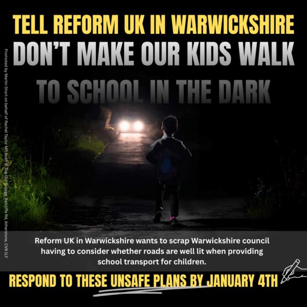 Rachel condemns Reform UK plan to make Warwickshire children walk up to five miles to school